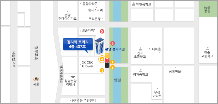 ºÐ´ç¼± 4¹ø Ãⱸ³ª ½ÅºÐ´ç¼± 6¹ø Ãⱸ·Î ³ª¿À½Ã¸é Ãⱸ ¹Ù·Î ¾Õ¿¡ ±â¾ÆÀÚµ¿Â÷ ¸ÅÀåÀÌ ÀÖ´Â Á¤ÀÚ¿ªÇÁ¶óÀÚ °Ç¹°ÀÌ ÀÖ½À´Ï´Ù. 4Ãþ 407È£·Î ¿À½Ã¸é µË´Ï´Ù.