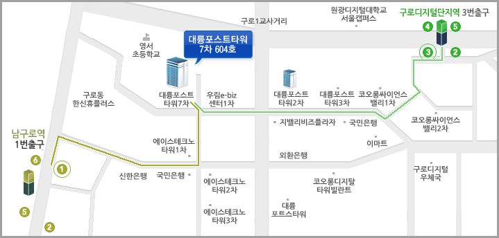 2È£¼± ±¸·ÎµðÁöÅдÜÁö¿ª 3¹ø Ãⱸ¿¡¼ °ñ¸ñ±æ·Î ¿À½Å ÈÄ ÄÚ¿À·Õ»çÀ̾𽺹븮 1Â÷¿Í 2Â÷ »çÀÌ¿¡ ÀÖ´Â °è´ÜÀ¸·Î ¿Ã¶ó¿À¼Å¼ ´ë·Î¸¦ µû¶ó ³»·Á¿À½Ã¸é µË´Ï´Ù.